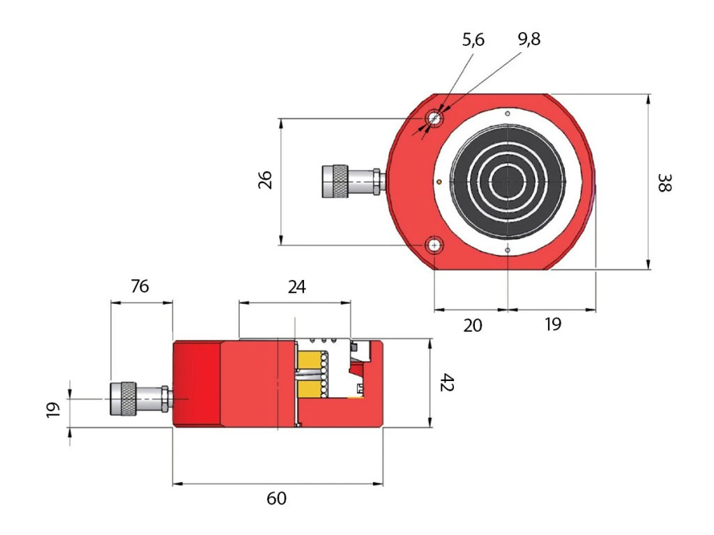 Kompaktní konstrukce a jednočinné provedení s pružinovým návratem zajišťují jednoduché použití, rychlý návrat pístu a vysokou spolehlivost i při dlouhodobém nasazení.